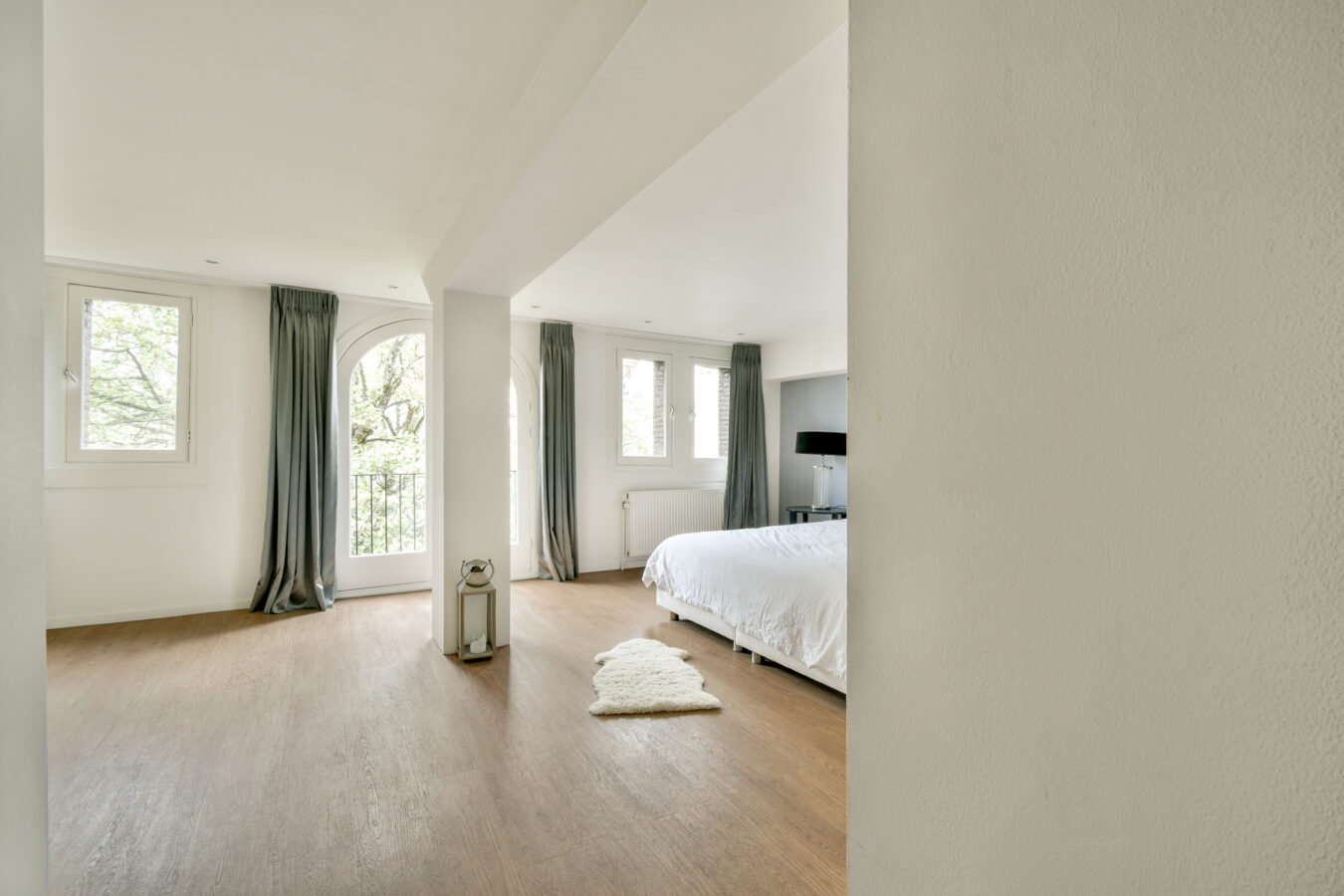 Aan de achterzijde ligt de eerste slaapkamer met een eigen badkamer voorzien van douche, wastafel en toilet. De royale masterbedroom beschikt over een tweede badkamer met inloopdouche en dubbele wastafel. Vanuit hier kijkt u uit over de groene binnentuinen tussen de Keizers- en Herengracht. De woning is afgewerkt met hoogwaardige materialen en verkeert in uitstekende staat van onderhoud.