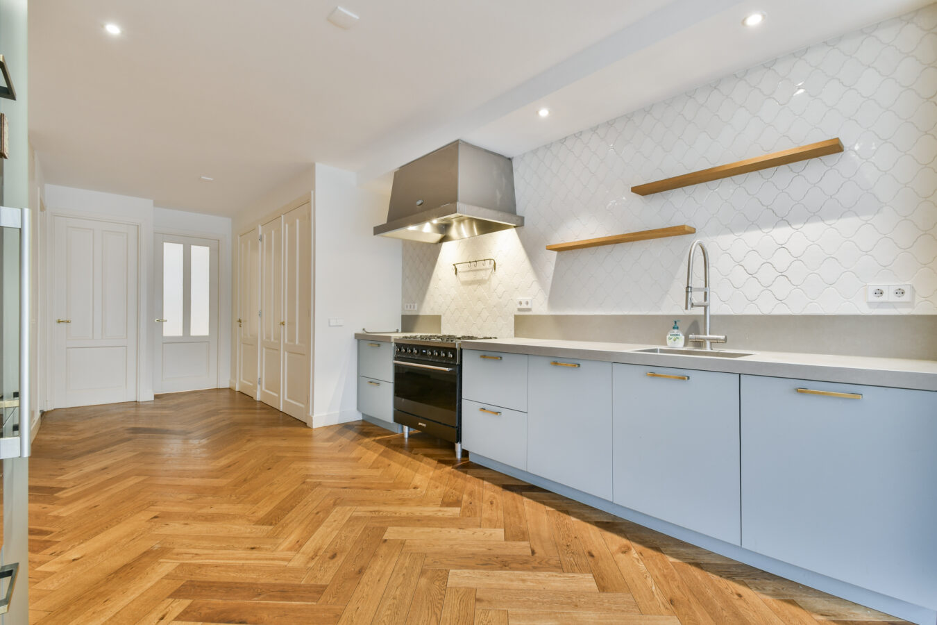 Tijdens de renovatie zijn alleen hoogwaardige materialen gebruikt, waaronder hardhouten kozijnen, dubbel glas en een prachtige houten visgraatvloer.