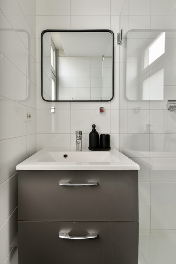 Gemeenschappelijke entree op de beletage. Via het trappenhuis bereik je de tweede verdieping. Bij binnenkomst sta je direct in de lichte woonkamer (twee grote kiep – kantelramen) waar een ruime zithoek is, openkeuken voorzien vijfpits gasfornuis, afzuigkap, koelkast, vaatwasser, combi-oven-magnetron, strak werkblad en greep loze kasten en lades. Ook hier is slim de wasmachine/droger geplaatst. Aangrenzend een prefecte ruimte voor een eethoek hier is tevens de meterkast gevestigd. Via een schuifdeur bereik je de ruime slaapkamer, bergkast waar ook de CV-installatie is geplaatst. Van uit de slaapkamer openslaande deuren naar balkon en de nette badkamer, voorzien van douche, wastafel, toilet, design handdoek radiator en groot raam voor natuurlijke ventilatie en daglicht.