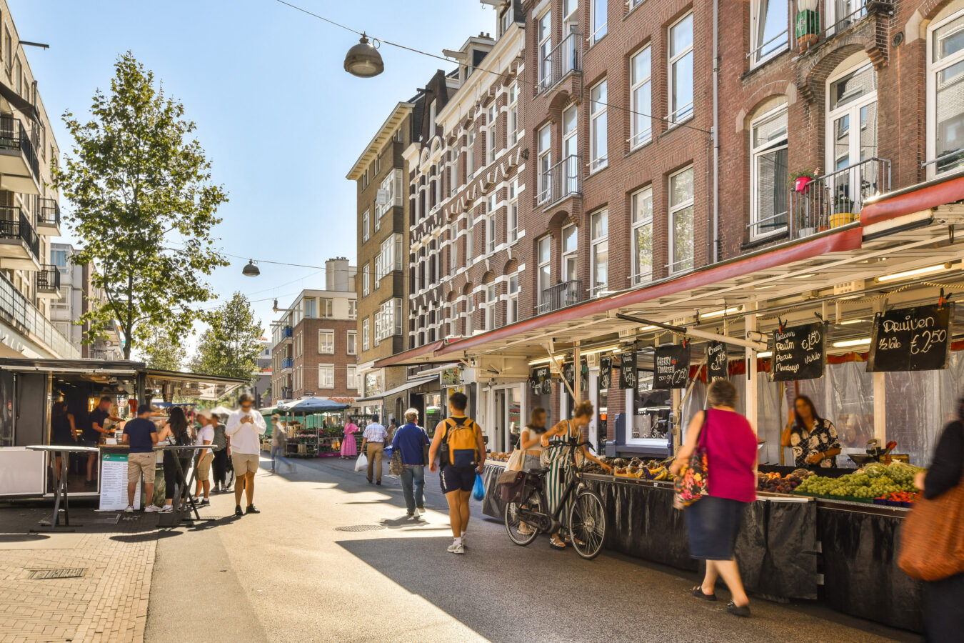Deze woning is gelegen op de bruisende Ten Katemarkt, nog een van de weinig originele Amsterdamse dag markten. Verder in deze trendy buurt vind je verschillende leuke winkels, cafés/restaurants en andere hotspots zoals Le French Café, Faam, Kauffmann, Ramona en Pazzi. Aan de achterzijde van de woning bevinden zich de populaire ‘Hallen’ en voor je dagelijkse boodschappen de Albert Heijn, Aldi, Stach en de Ten Katemarkt om de hoek. Ook de negen straatjes, Jordaan, grachtengordel en diverse parken zijn zeer goed te bereiken.